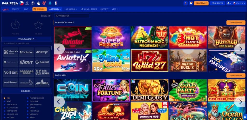 Hry a výherní automaty na PariPesa