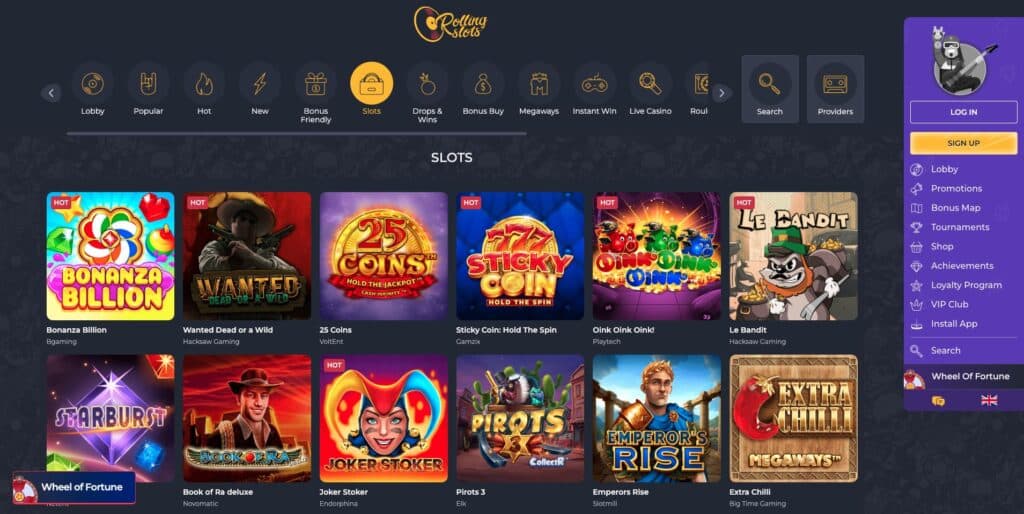 Rolling Slots is one of the most consistently high-rated casinos across lists, and our expert team agrees. It offers a vibrant, rock-and-roll inspired atmosphere that sets it apart from more traditional sites. We are particularly pleased with the high-quality loyalty shop, the over 10000 titles and the inclusion of leading software providers. Add to that the fast transactions and low limits, and you have a great RollingSlots experience.